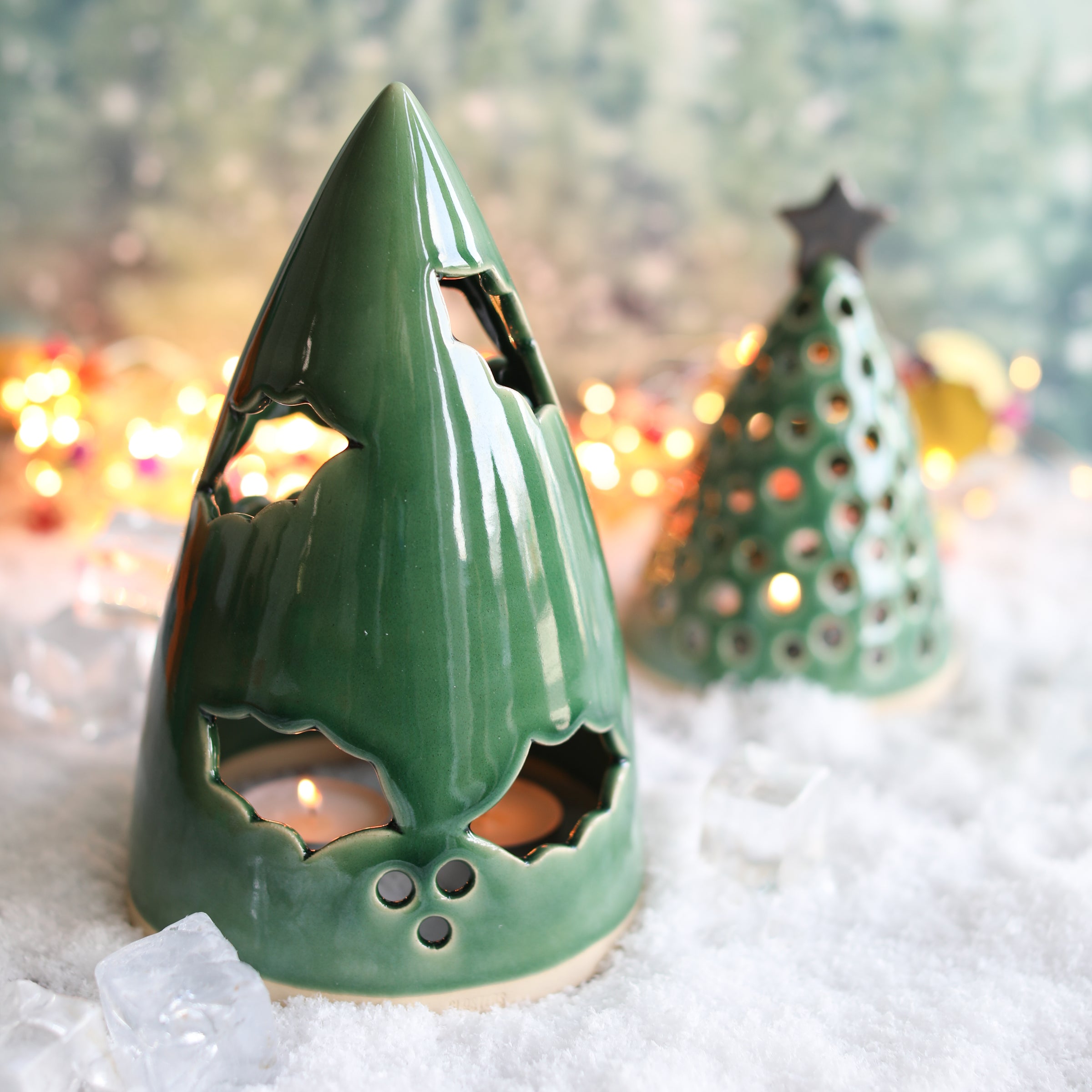These ceramic Christmas tree lanterns are made in our workshop in Porthmadog, Wales, where our talented team of ceramists and glazers put love and care into every piece they make. Due to the handmade nature of the items, they may differ slightly in size and design from those pictured - your piece is unique to you!
