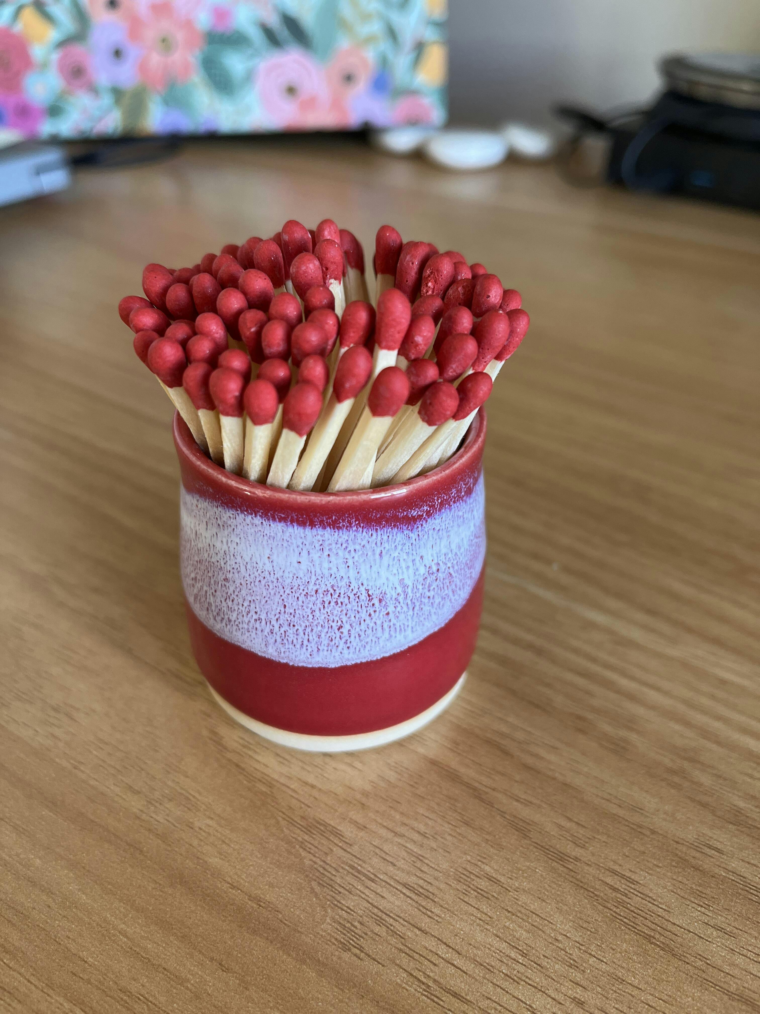 Just in time for the gift giving season, we’ve added some festive new colour glaze options to our popular match pot - a unique gift idea for that candle or incense-lover that stands a little outside the norm, but perfectly on brand!