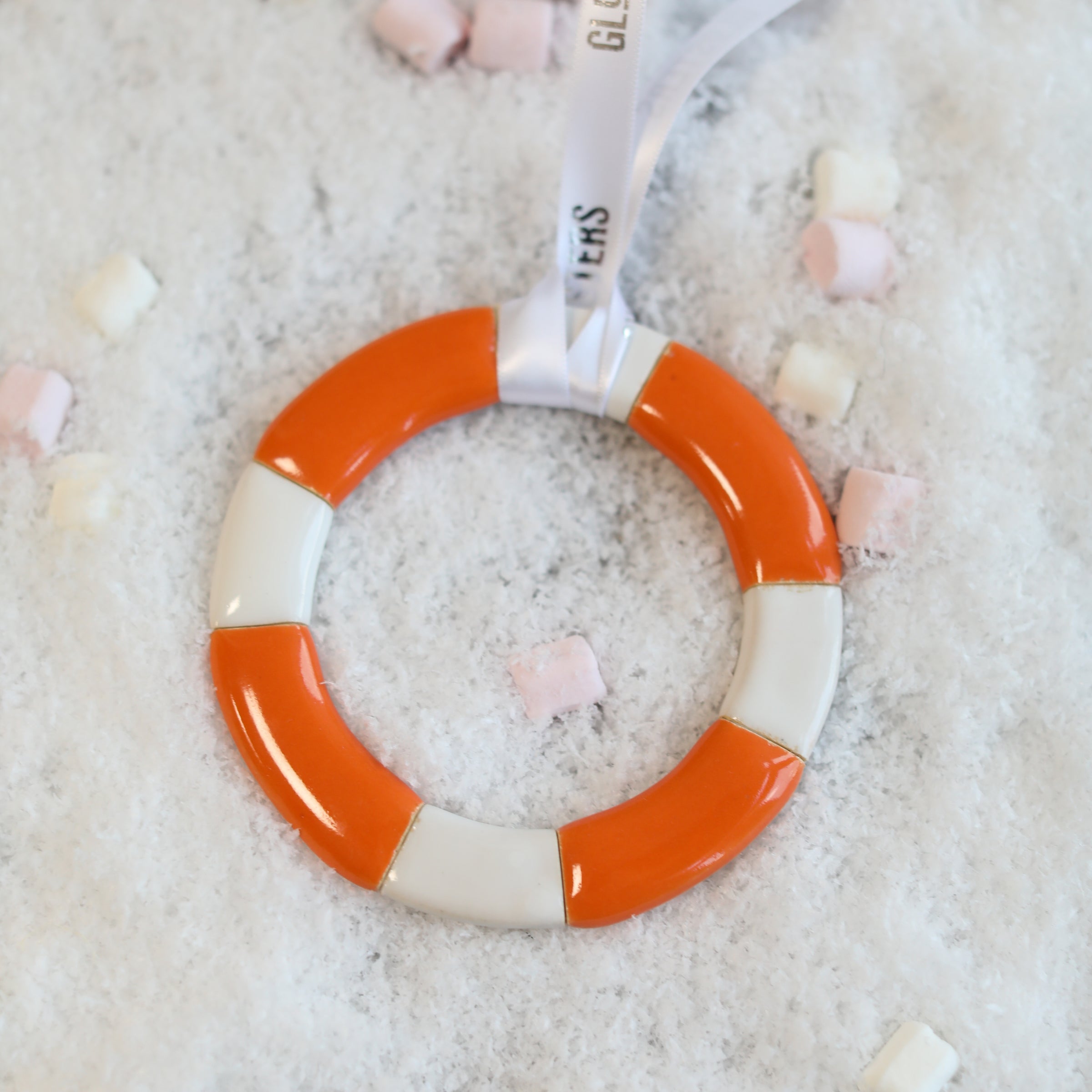 We've embraced this feeling with our 2025 Christmas collection, featuring ceramic tree ornaments inspired by the most popular figures from our year's launches. Here, we have a Life Ring ceramic tree ornament, inspired by when Gilbert (the Glosters Pumpkin) took a dip in the ocean for our Summer launch.