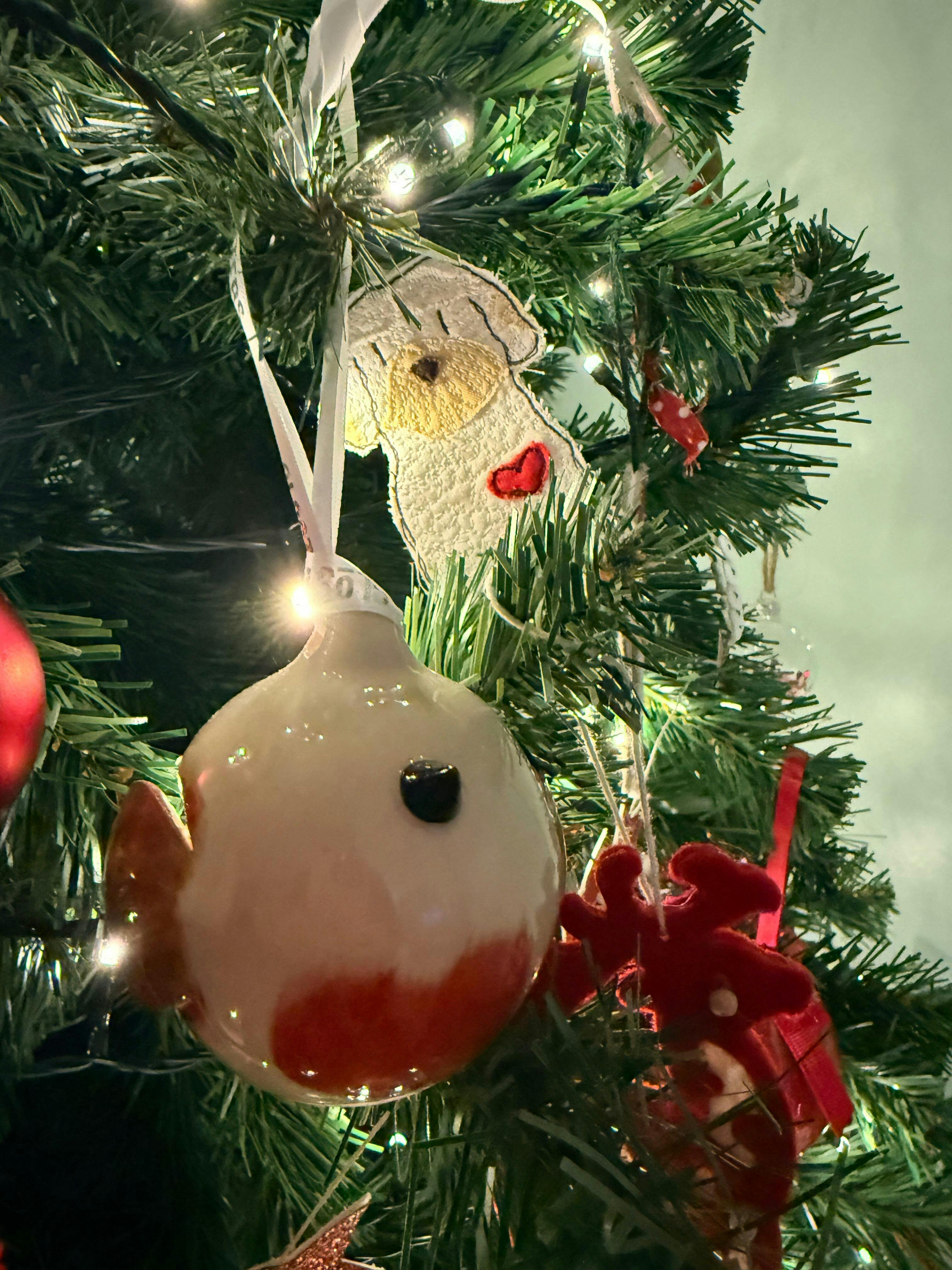 These baubles are handmade in our workshop in Porthmadog using high quality stoneware clay and are finished by hand, so each item is a one-of-a-kind piece made with love. The robin design is an exclusive for 2025, and is seen on our other ceramic Christmas decorations as well as other new festive designs.