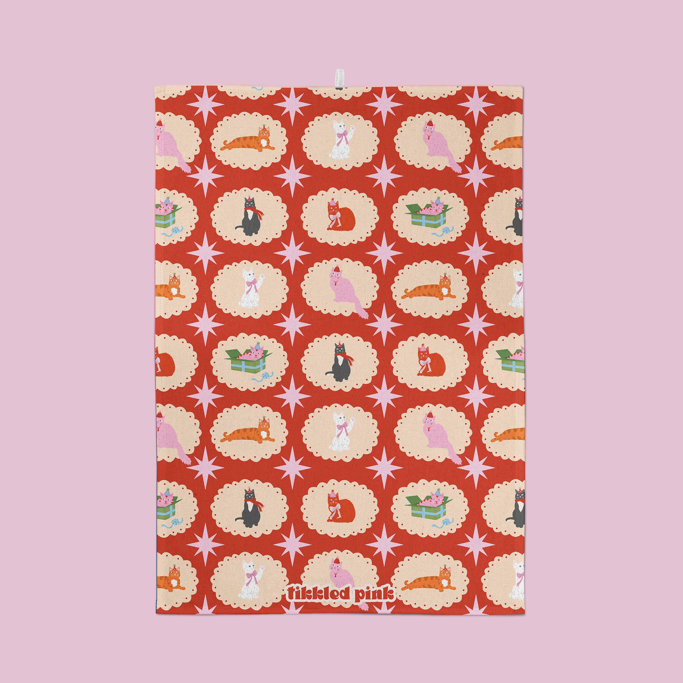 🐱 Festive Cats Christmas Tea Towel – Cat Lovers Christmas Gift 🎄